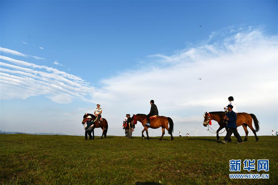 5月3日,游客在貴州省龍里大草原景區(qū)騎馬觀光?!拔逡弧毙¢L(zhǎng)假期間,貴州省黔南布依族苗族自治州龍里大草原景區(qū)天氣怡人,高山草原風(fēng)光吸引游客前來游玩。新華社記者 楊文斌 攝
