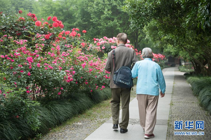 5月5日,游客在西湖畔的杭州花圃觀看月季花展。“五一”期間,第八屆杭州西湖月季花精品展在杭州西子湖畔舉行,展出國內(nèi)外700余個月季品種。新華社記者翁忻旸攝