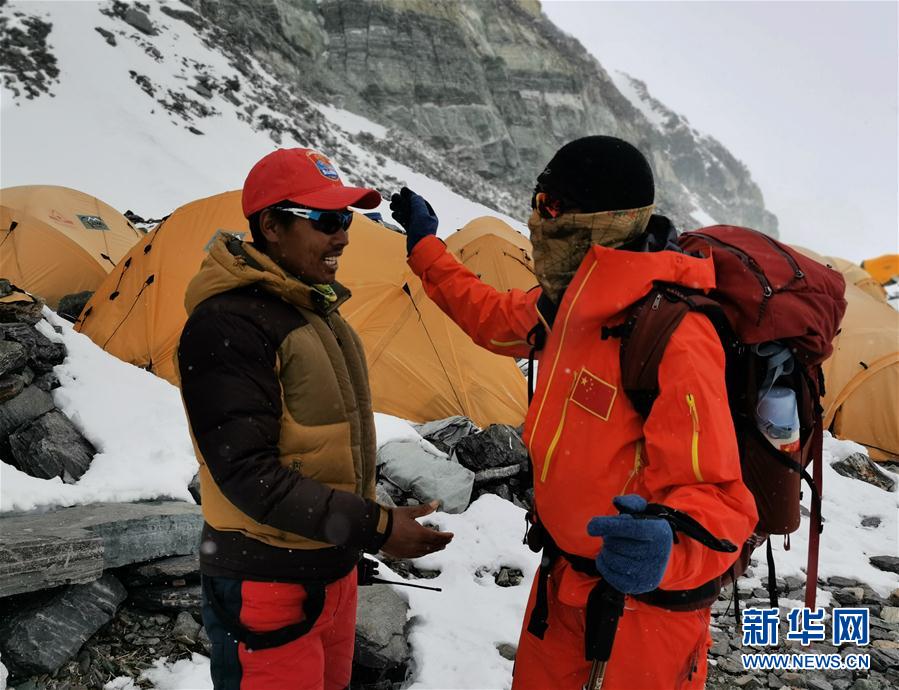 5月7日,2020珠峰高程測量登山隊(duì)進(jìn)駐海拔6500米的前進(jìn)營地。新華社特約記者扎西次仁攝