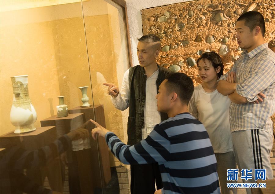 5月8日,項(xiàng)宏金在龍泉青瓷裝飾紋樣研究所和來(lái)訪的年輕瓷人分享古瓷。1965年出生的項(xiàng)宏金,被浙江龍泉年輕一代瓷人稱為“項(xiàng)哥”,他從20世紀(jì)90年代開(kāi)始收集龍泉青瓷標(biāo)本,研究青瓷紋樣。2014年出版著作《龍泉青瓷裝飾紋樣》,次年開(kāi)設(shè)龍泉青瓷裝飾紋樣研究所,將自己收藏的千余件標(biāo)本跟瓷器愛(ài)好者、創(chuàng)作者免費(fèi)分享。新華社記者翁忻旸攝