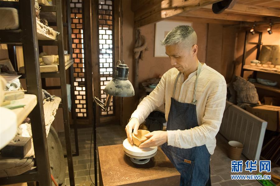 5月8日,項(xiàng)宏金在龍泉青瓷裝飾紋樣研究所捏制器皿。1965年出生的項(xiàng)宏金,被浙江龍泉年輕一代瓷人稱為“項(xiàng)哥”,他從20世紀(jì)90年代開(kāi)始收集龍泉青瓷標(biāo)本,研究青瓷紋樣。2014年出版著作《龍泉青瓷裝飾紋樣》,次年開(kāi)設(shè)龍泉青瓷裝飾紋樣研究所,將自己收藏的千余件標(biāo)本跟瓷器愛(ài)好者、創(chuàng)作者免費(fèi)分享。新華社記者翁忻旸攝