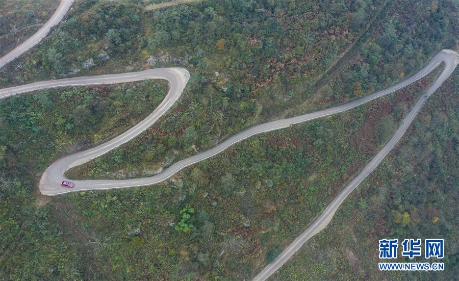 曾柱銘開著自己的小轎車行進(jìn)在雷波縣箐口鄉(xiāng)厥箕村的山道上(2019年12月12日攝,無人機(jī)照片)。新華社記者江宏景攝