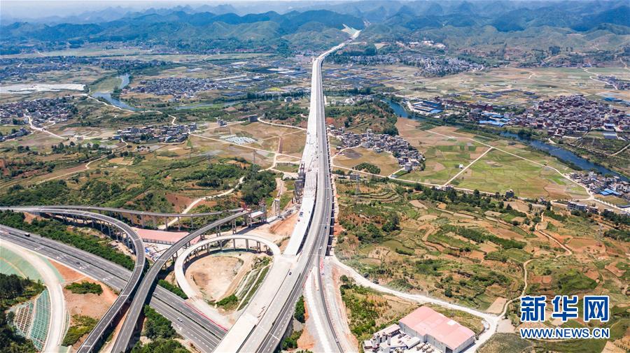 都安高速改擴建路段的惠水特大橋與惠水樞紐(無人機照片,5月9日攝)。