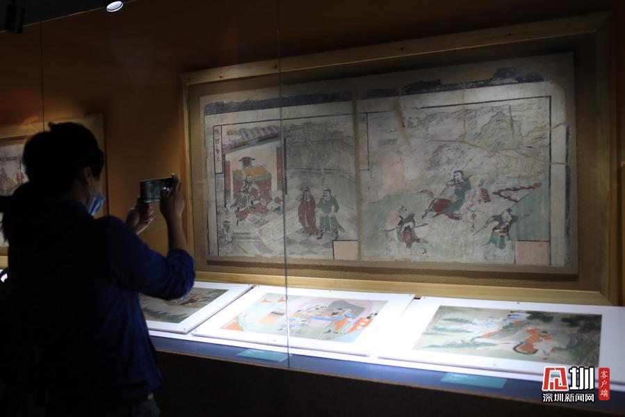 2020年5月10日報道,近十年來最大規(guī)模三國文物展“三國志——文化主題特展”,正在中華世紀壇展出。圖為觀眾在看關公壁畫。
