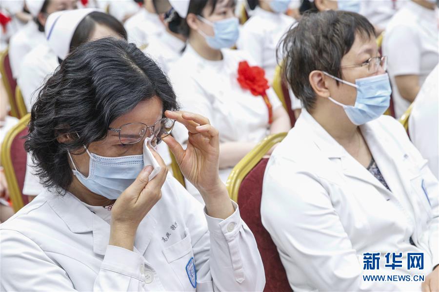 5月11日,北京大學(xué)人民醫(yī)院援鄂抗疫醫(yī)療隊(duì)感控專家高燕教授聽(tīng)?wèi)?zhàn)“疫”故事時(shí)感動(dòng)落淚。在國(guó)際護(hù)士節(jié)到來(lái)之際,北京大學(xué)人民醫(yī)院11日舉辦慶祝護(hù)士節(jié)暨優(yōu)秀集體和個(gè)人表彰活動(dòng),并邀請(qǐng)?jiān)踽t(yī)療隊(duì)護(hù)士代表分享戰(zhàn)“疫”故事。我國(guó)今年護(hù)士節(jié)的主題為“致敬護(hù)士隊(duì)伍,攜手戰(zhàn)勝疫情”。新華社記者張玉薇攝