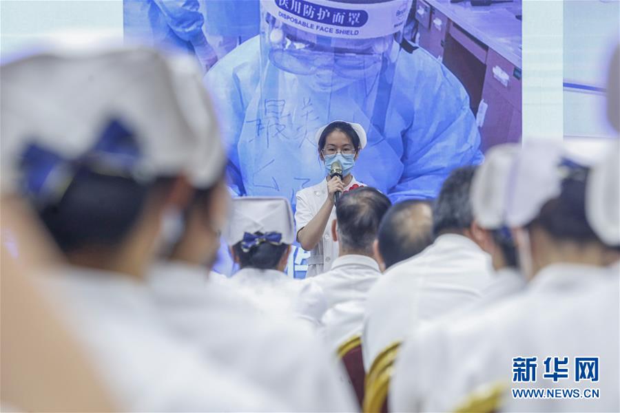 5月11日,援鄂醫(yī)療隊(duì)隊(duì)員代表在活動(dòng)上分享戰(zhàn)“疫”故事。在國(guó)際護(hù)士節(jié)到來(lái)之際,北京大學(xué)人民醫(yī)院11日舉辦慶祝護(hù)士節(jié)暨優(yōu)秀集體和個(gè)人表彰活動(dòng),并邀請(qǐng)?jiān)踽t(yī)療隊(duì)護(hù)士代表分享戰(zhàn)“疫”故事。我國(guó)今年護(hù)士節(jié)的主題為“致敬護(hù)士隊(duì)伍,攜手戰(zhàn)勝疫情”。新華社記者張玉薇攝