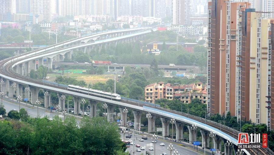 2020年5月11日,四川省成都市,動車運行在成灌鐵路上。隨著發(fā)展,鐵路沿線已是高樓林立。
