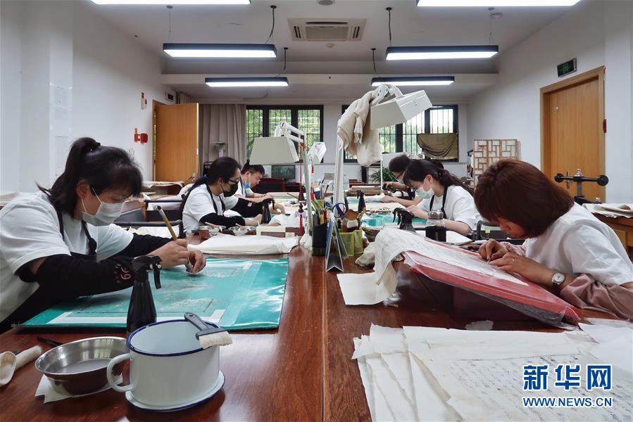 5月13日,古籍修復(fù)師在對書頁進(jìn)行修復(fù)。天一閣藏品修復(fù)部目前有修復(fù)師14人,每年約修復(fù)古籍14000余頁。據(jù)介紹,修復(fù)一冊古籍通常需要1至2個月,有的甚至需要1年以上。新華社記者鄭夢雨攝