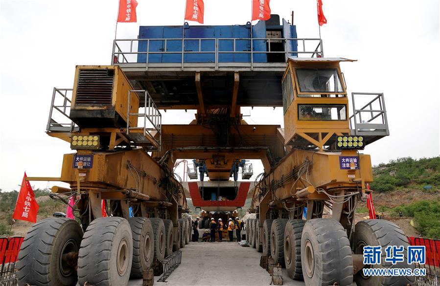 5月13日,運(yùn)架一體機(jī)在位于河南焦作的施工現(xiàn)場(chǎng)進(jìn)行架梁作業(yè)。 當(dāng)日,隨著最后一榀長(zhǎng)24米、重552噸的箱梁架設(shè)就位,太焦高鐵全線橋梁架設(shè)完成。從山西太原到河南焦作的太焦高鐵是國(guó)家規(guī)劃建設(shè)的“八縱八橫”高速鐵路網(wǎng)的重要組成部分,計(jì)劃2020年底建成通車(chē)。 新華社記者李安攝