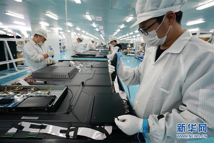 在位于宿遷激光產(chǎn)業(yè)園的江蘇華科創(chuàng)智技術(shù)有限公司,工人在組裝車間作業(yè)(5月13日攝)。江蘇省宿遷市2016年初啟動建設(shè)宿遷激光產(chǎn)業(yè)園,目前,園區(qū)共有激光及相關(guān)配套企業(yè)50余家,涉及激光切割、激光打標、激光醫(yī)療等。當?shù)夭粩嗤晟茍@區(qū)配套設(shè)施,推動激光產(chǎn)業(yè)集聚,打造激光研發(fā)、裝備制造和加工應(yīng)用的完整產(chǎn)業(yè)鏈。新華社記者韓瑜慶攝