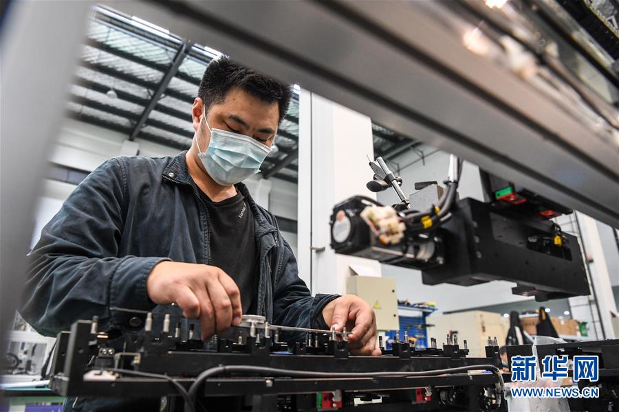 5月14日,工人在江蘇先河激光技術(shù)有限公司組裝調(diào)試全自動皮秒激光切割機。江蘇省宿遷市2016年初啟動建設(shè)宿遷激光產(chǎn)業(yè)園,目前,園區(qū)共有激光及相關(guān)配套企業(yè)50余家,涉及激光切割、激光打標、激光醫(yī)療等。當?shù)夭粩嗤晟茍@區(qū)配套設(shè)施,推動激光產(chǎn)業(yè)集聚,打造激光研發(fā)、裝備制造和加工應(yīng)用的完整產(chǎn)業(yè)鏈。新華社記者李博攝