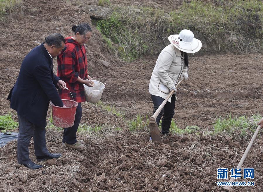 龍臺村村民在播種姜黃(4月1日攝)。新華社記者劉坤攝