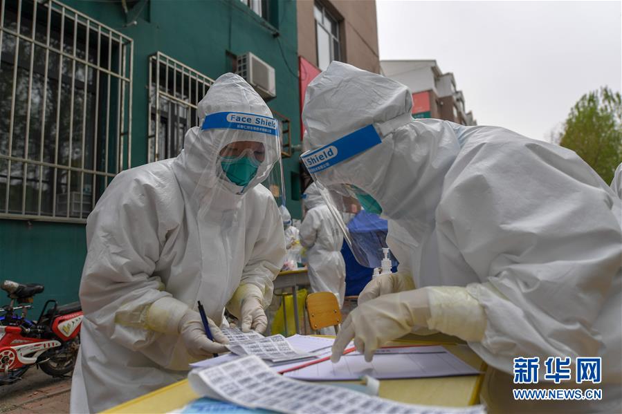 5月15日,在舒蘭市建馨園小區(qū),工作人員進行采樣準備工作。當日,從吉林市7家市直醫(yī)院抽調(diào)的300名護士經(jīng)培訓后,全部投入到舒蘭市(隸屬于吉林市)核酸采樣工作中。為提供追溯傳染源所必需的核酸檢測相關數(shù)據(jù),舒蘭市根據(jù)確診病例的活動軌跡,將流調(diào)和核酸檢測范圍擴大至本地確診病例和無癥狀感染者的次密接人員及一般接觸者。新華社記者張楠攝