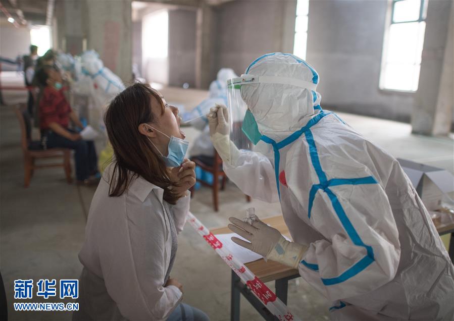 5月15日,在武漢華生漢口城市廣場四期檢測點(diǎn),工作人員對市民進(jìn)行核酸檢測。近日,武漢將對全市市民有序開展核酸檢測,進(jìn)一步摸清無癥狀感染者底數(shù),進(jìn)而有效管控。新華社記者肖藝九攝