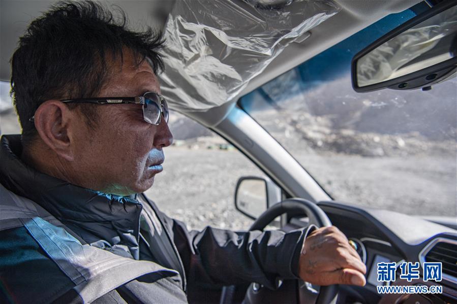 拉巴次仁駕駛巡護(hù)車在珠穆朗瑪峰國家級自然保護(hù)區(qū)內(nèi)巡邏(5月15日攝)。新華社記者孫非攝