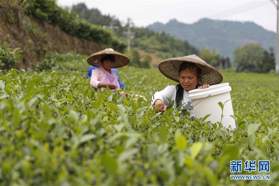 5月17日,村民在新院村茶葉基地采摘夏茶。新華社發(fā)(黃偉攝)