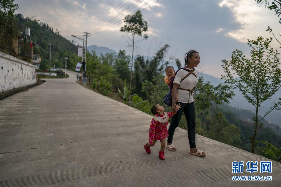一名婦女領(lǐng)著孩子走在回家的路上(3月26日攝)。新華社記者江文耀攝