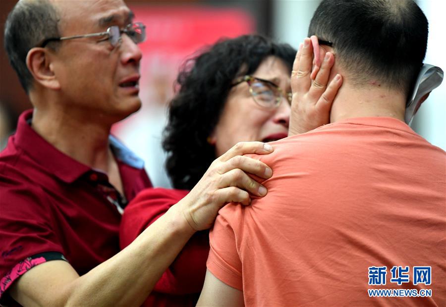 5月18日,李靜芝、毛振平(左)與失散32年的兒子毛寅團(tuán)聚。新華社記者張博文攝