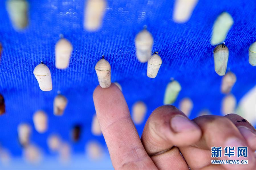 在吉木薩爾縣七彩蝶園,關(guān)富云在制作蝴蝶標(biāo)本(5月15日攝)。走進(jìn)關(guān)富云的七彩蝶園,游客不僅可以近距離接觸翩翩起舞的蝴蝶,還可以欣賞蝴蝶破繭成蝶的蛻變過(guò)程。今年34歲的關(guān)富云用9年的時(shí)間實(shí)現(xiàn)了自己的“蝴蝶夢(mèng)”,完成美麗的“蝶變”。關(guān)富云家住新疆吉木薩爾縣北地社區(qū)。2011年,他看到一檔農(nóng)業(yè)致富節(jié)目,萌生了養(yǎng)殖蝴蝶的想法。關(guān)富云說(shuō),當(dāng)時(shí)蝴蝶養(yǎng)殖還是一種新興產(chǎn)業(yè),他抱著試一試的想法,在海南學(xué)習(xí)了3個(gè)月蝴蝶養(yǎng)殖,帶回100多個(gè)蝶蛹在家試驗(yàn)養(yǎng)殖。蝴蝶的生存周期短,在當(dāng)?shù)仞B(yǎng)殖需要克服溫度、濕度、病蟲害等問(wèn)題。關(guān)富云不斷嘗試,越挫越勇,羽化成功的蝴蝶在2014年終于突破了萬(wàn)只。蝴蝶的色彩艷麗,活體蝴蝶可用于婚慶、開(kāi)業(yè)慶典等活動(dòng)中放飛,可以取得很好的收益。但它的生命短暫,如何才能最大化蝴蝶的效益,留住它的美呢?關(guān)富云動(dòng)起了心思,開(kāi)始嘗試制作標(biāo)本和蝶翅畫?!昂宛B(yǎng)殖不同,做蝶翅畫是個(gè)創(chuàng)作的過(guò)程,從選擇標(biāo)本到粘貼,每一步都要突出美感?!标P(guān)富云介紹,一幅色彩明艷、栩栩如生的蝶翅畫耗時(shí)多日才能完成。如今,關(guān)富云的活體蝴蝶和蝶翅畫通過(guò)線上線下銷售,產(chǎn)品還銷往北京、廈門等地。關(guān)富云的蝴蝶產(chǎn)品得到市場(chǎng)的認(rèn)可,政府也對(duì)他給予大力支持。2019年,吉木薩爾縣在泉子街鎮(zhèn)建起蝴蝶觀賞園,吸引了不少游客到此參觀游玩。對(duì)于未來(lái)的發(fā)展,關(guān)富云信心滿滿,“我希望把蝴蝶產(chǎn)業(yè)發(fā)展到天山南北,讓人們?cè)诤涞亩疽材苡^賞到蝴蝶,并且讓更多人參與其中,致富脫貧”。新華社記者丁磊攝