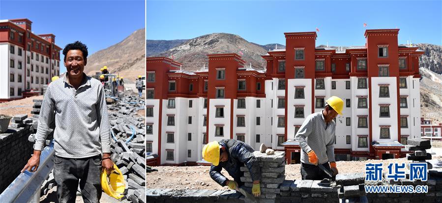 拼版照片:左圖為西藏昌都市八宿縣吉達(dá)鄉(xiāng)仲沙村村民平措;右圖為平措(右)在八宿縣西巴易地扶貧搬遷安置點(diǎn)的工地上干活。2019年,平措和家人搬遷到西巴易地扶貧搬遷安置點(diǎn),住進(jìn)了75平方米的新居,平措還在安置點(diǎn)找到了一份建筑工的工作,每月有4000多元的收入。在此之前,平措靠在縣城打零工掙錢(qián)(5月10日攝)。新華社記者詹彥攝