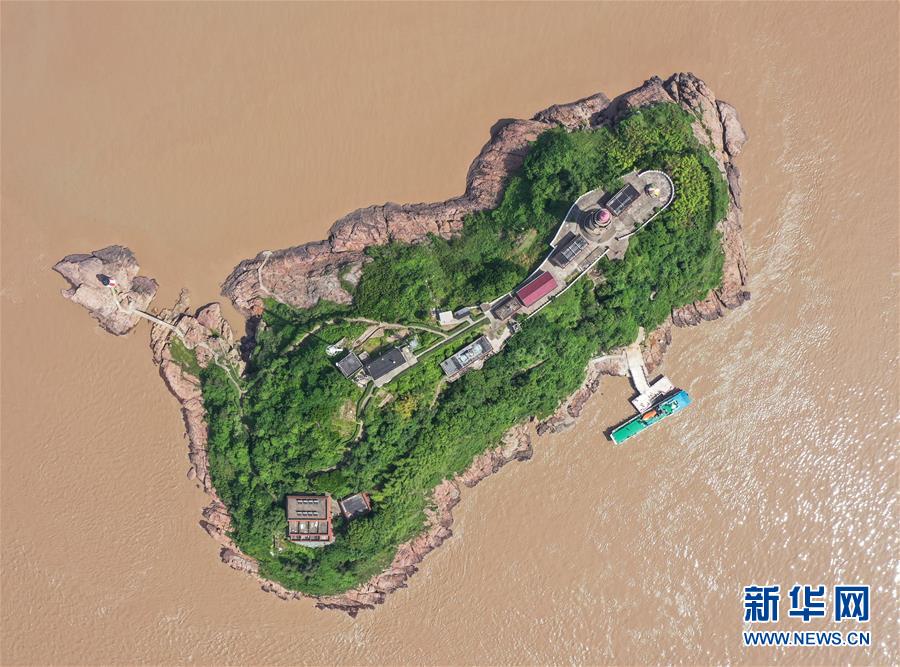 5月20日,補(bǔ)給船在浙江寧波七里嶼碼頭靠岸(無(wú)人機(jī)照片)。補(bǔ)給船每周送一次生活物資。新華社記者翁忻旸攝