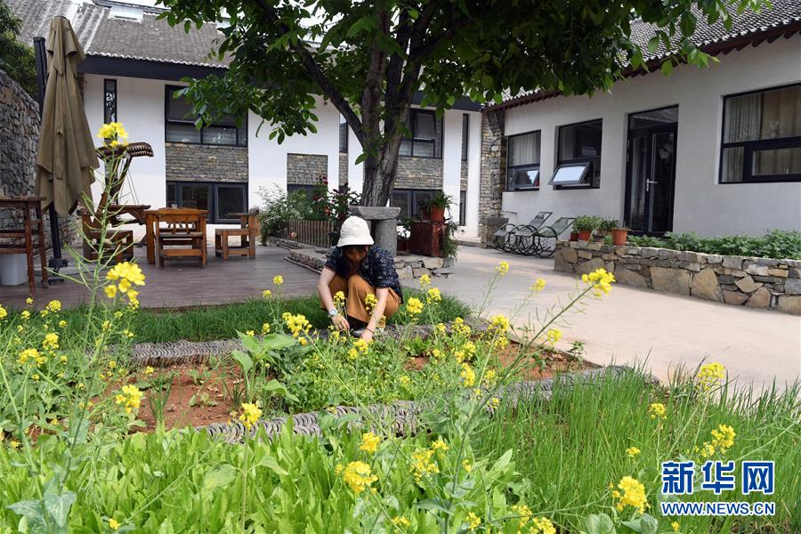 5月21日,在天津市薊州區(qū)漁陽(yáng)鎮(zhèn)西井峪村的一處農(nóng)家院,游客采摘新鮮蔬菜。新華社記者馬平攝