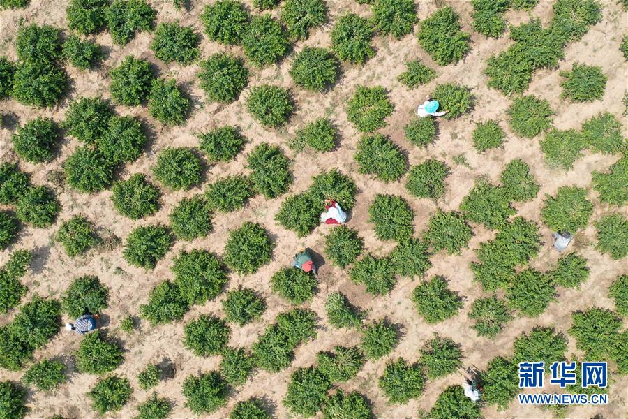 5月21日,河北省清河縣農(nóng)墾金銀花種植專業(yè)合作社社員在采收金銀花(無人機照片)。2017年以來,河北省清河縣在推進農(nóng)業(yè)產(chǎn)業(yè)結(jié)構(gòu)調(diào)整過程中,結(jié)合市場需求,立足當?shù)赝寥?、氣候特點,依托公司“訂單”引導農(nóng)民發(fā)展金銀花種植。目前,清河縣金銀花種植面積近2000畝,帶動40多個村莊的2000余名農(nóng)民人均增收千元以上。新華社記者牟宇攝