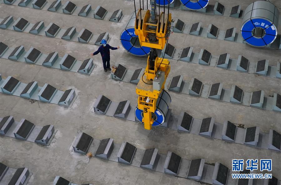 5月22日,工人在遷安市首鋼遷鋼高端汽車板生產(chǎn)車間吊運成品鋼卷。近日,首鋼股份公司遷安鋼鐵公司高端汽車板生產(chǎn)線項目在河北省遷安市投產(chǎn)。該項目具有技術水平領先、操作智能、節(jié)能環(huán)保等優(yōu)勢,酸洗板材年產(chǎn)量達100萬噸,產(chǎn)品主要應用于高端汽車零部件生產(chǎn)及空調(diào)壓縮機用鋼和高強系列用鋼、精沖用鋼等多個領域。新華社記者 楊世堯 攝