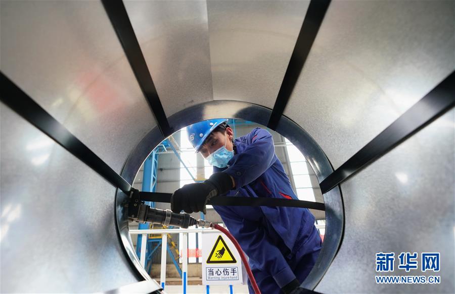 5月22日,工人在遷安市首鋼遷鋼高端汽車(chē)板生產(chǎn)車(chē)間對(duì)產(chǎn)品進(jìn)行包裝。近日,首鋼股份公司遷安鋼鐵公司高端汽車(chē)板生產(chǎn)線項(xiàng)目在河北省遷安市投產(chǎn)。該項(xiàng)目具有技術(shù)水平領(lǐng)先、操作智能、節(jié)能環(huán)保等優(yōu)勢(shì),酸洗板材年產(chǎn)量達(dá)100萬(wàn)噸,產(chǎn)品主要應(yīng)用于高端汽車(chē)零部件生產(chǎn)及空調(diào)壓縮機(jī)用鋼和高強(qiáng)系列用鋼、精沖用鋼等多個(gè)領(lǐng)域。新華社記者 楊世堯 攝