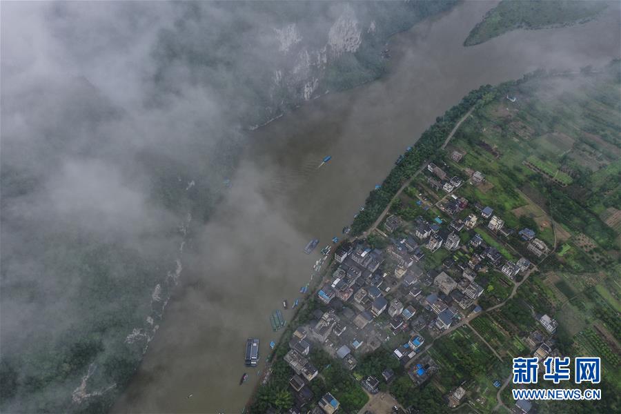 這是在廣西桂林市陽朔縣興坪鎮(zhèn)拍攝的山水風(fēng)光(5月19日攝,無人機(jī)全景照片)?!吧n蒼森八桂,茲地在湘南。江作青羅帶,山如碧玉篸……”一千多年前,唐朝詩人韓愈寫盡桂林山水之美。初夏時(shí)節(jié),在廣西桂林市陽朔縣興坪鎮(zhèn),藍(lán)天白云下,煙雨朦朧中,桂林山水盡顯秀美。新華社記者 周華 攝