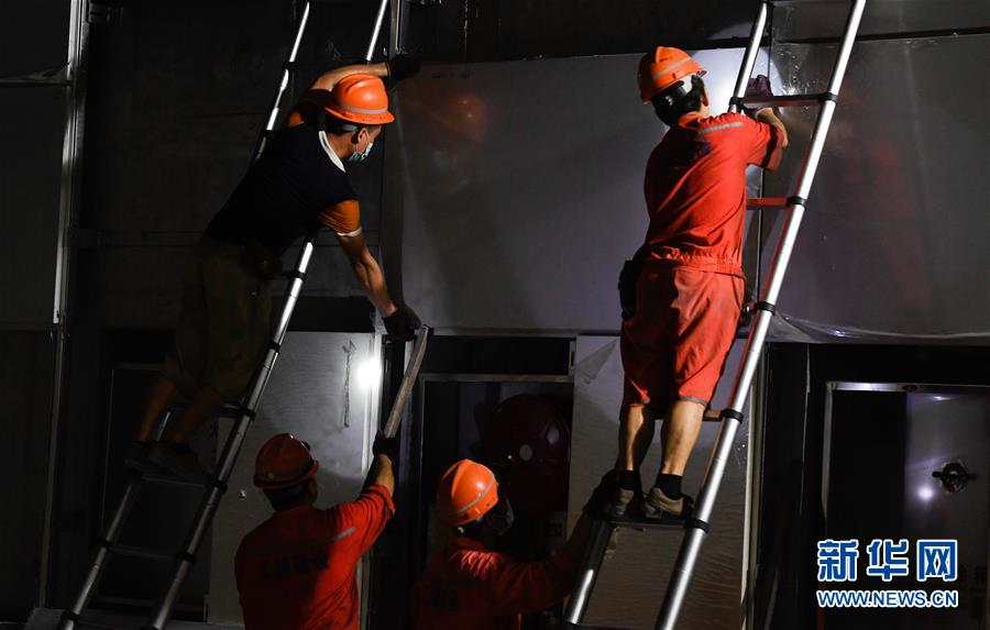 5月23日,工人在??谖拿鳀|越江通道項目隧道內(nèi)施工。新華社記者楊冠宇攝