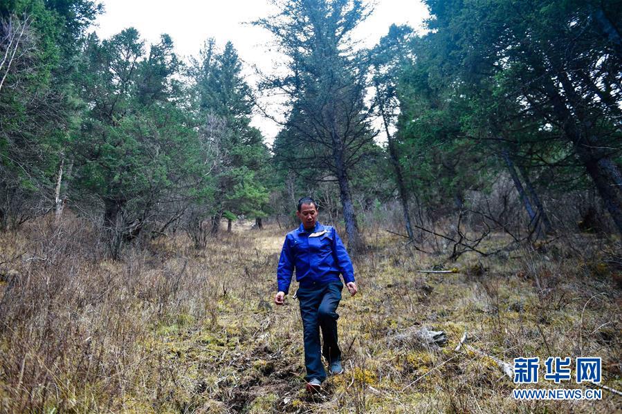 在青海省果洛藏族自治州班瑪縣境內(nèi)的瑪可河林區(qū),瑪可河林場(chǎng)護(hù)林員朱福海在巡查(2019年11月12日攝)。新華社記者張龍攝