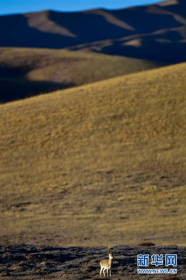 這是2019年11月9日在青海省果洛藏族自治州瑪沁縣境內的草原上拍攝的藏原羚。新華社記者張龍攝