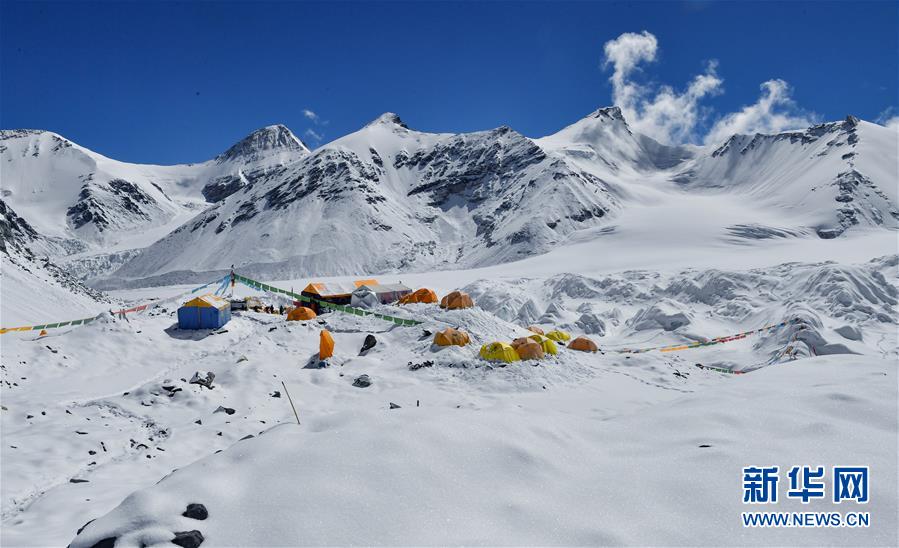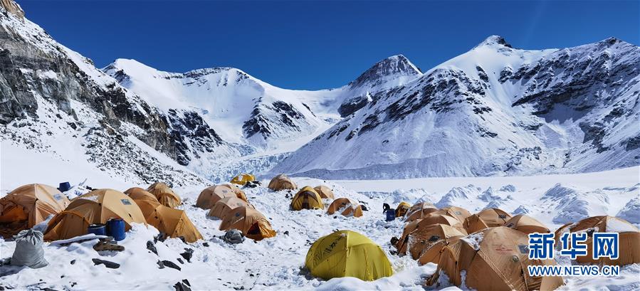 于珠峰東絨布冰川旁海拔6500米的珠峰前進(jìn)營(yíng)地(5月22日攝,手機(jī)照片)。新華社記者晉美多吉攝