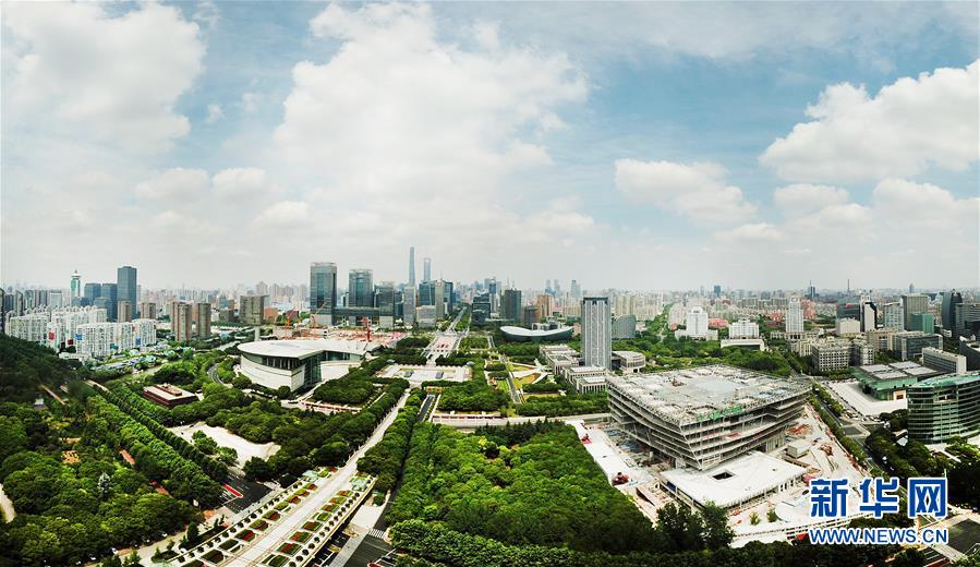 從空中俯瞰建設(shè)中的上海圖書館東館(右)及其所在區(qū)域(無人機照片,5月22日攝)。 新華社記者 方喆 攝