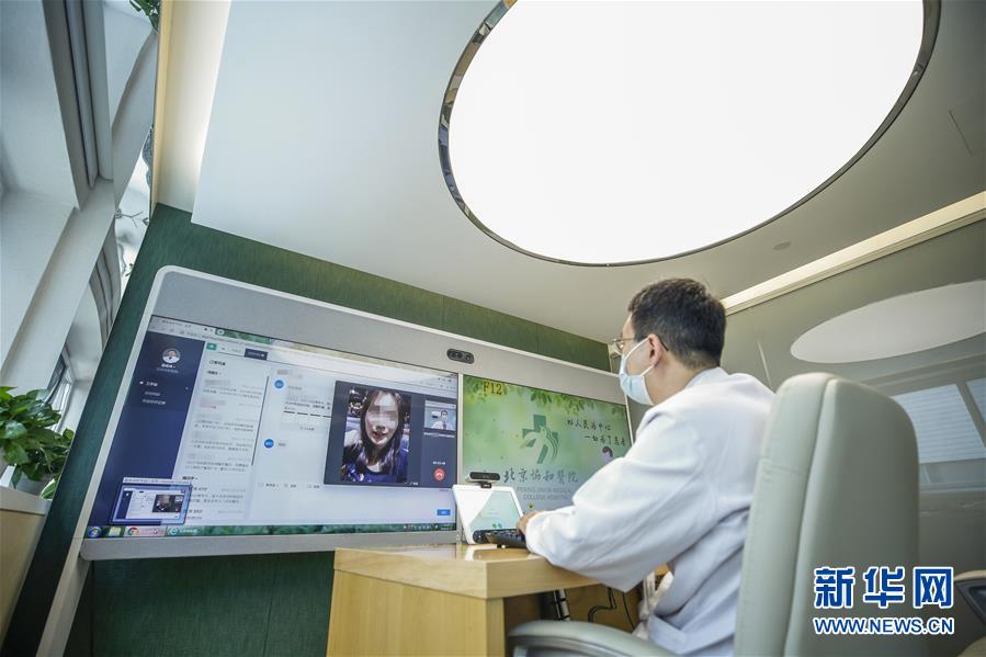 5月25日,北京協(xié)和醫(yī)院內(nèi)分泌科醫(yī)生張化冰在遠(yuǎn)程醫(yī)學(xué)中心出診。新華社記者張玉薇攝