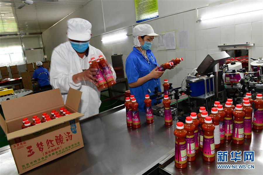 5月26日,在貴州省黔東南苗族侗族自治州麻江縣明洋食品公司生產(chǎn)車間,工人將制作好的古法酸湯裝箱。新華社記者楊楹攝