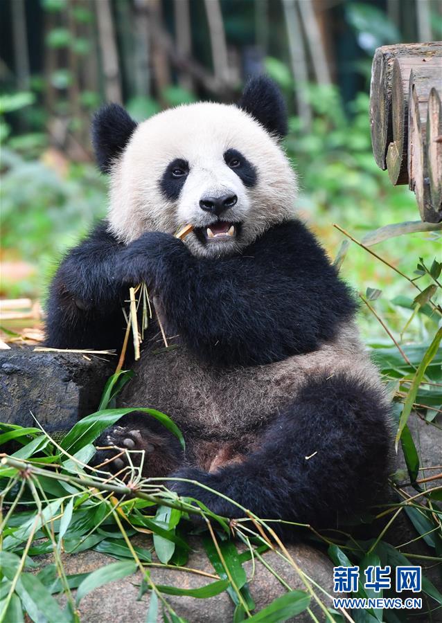 5月27日,大熊貓婷仔在享受竹子大餐。正在享受竹子大餐的廣州長隆野生動(dòng)物世界大熊貓婷仔被大熊貓隆仔搶食,兩只大熊貓上演一場(chǎng)爭食戲碼。新華社記者劉大偉攝