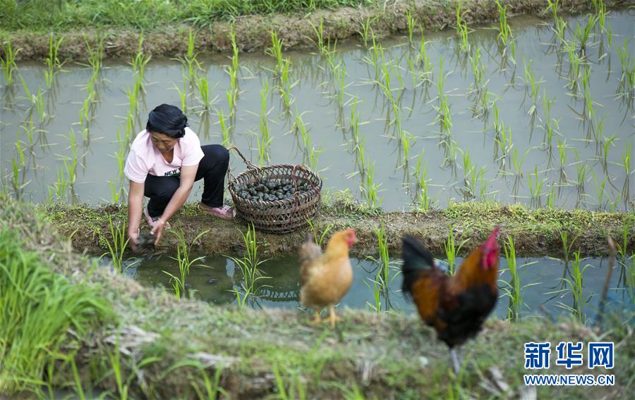 在田螺養(yǎng)殖過(guò)程中,采取“公司+合作社+農(nóng)戶”的模式,政府統(tǒng)一向龍頭公司采購(gòu)種螺交給合作社,合作社根據(jù)貧困戶水田規(guī)模和意愿發(fā)放種螺,同時(shí)公司技術(shù)人員入村開展養(yǎng)殖技術(shù)培訓(xùn),田螺收獲時(shí)再由合作社對(duì)接種螺公司統(tǒng)一上門按保底價(jià)回收,解除了貧困戶養(yǎng)殖和銷售的后顧之憂,進(jìn)一步拓寬山區(qū)群眾脫貧增收渠道。新華社記者楊文斌攝