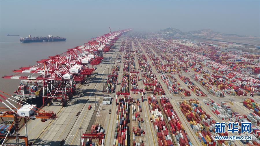 這是3月18日拍攝的上海洋山港集裝箱碼頭(無(wú)人機(jī)照片)。新華社記者丁汀攝