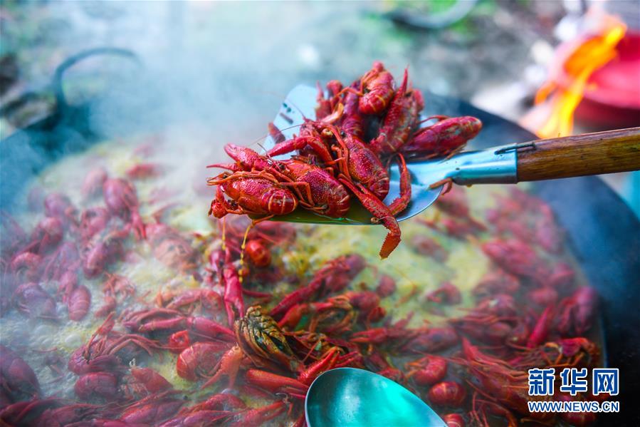 5月30日,廚師在龍蝦狂歡節(jié)現場烹制小龍蝦。
