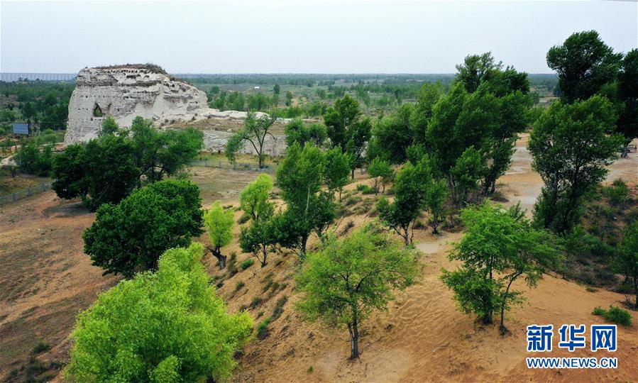統(tǒng)萬(wàn)城北接浩瀚的毛烏素沙漠,千余年來(lái),隨著惡劣生態(tài)環(huán)境的影響,曾經(jīng)的城池遺存遭到風(fēng)雨流沙侵蝕,一度掩埋于沙漠之下。如今,隨著當(dāng)?shù)貛状舜罅χ紊常鷳B(tài)環(huán)境得以明顯改善,統(tǒng)萬(wàn)城遺址也隨之變成綠意盎然的“大漠名勝”。