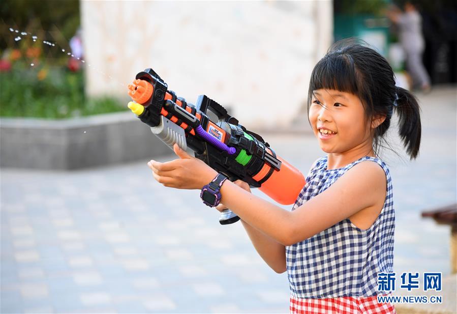 5月31日,在北京市海淀區(qū)中關(guān)村街道新科祥園社區(qū)廣場(chǎng),小朋友們?cè)谕嫠?。新華社記者任超攝