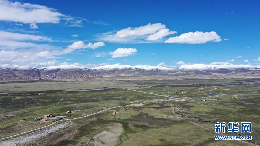 這是5月30日拍攝的四川省甘孜藏族自治州理塘縣奔戈鄉(xiāng)卡灰村一景(無人機(jī)照片)。四川省甘孜藏族自治州理塘縣地處青藏高原東部,縣城海拔約4000米,有“天空之城”的美譽(yù)。時(shí)值初夏,理塘的天空碧藍(lán)如洗,巍峨的雪山環(huán)繞四周,牦牛星星點(diǎn)點(diǎn)散落于曠野之上,構(gòu)成一幅高原特有的壯美圖景。新華社記者李夢馨攝