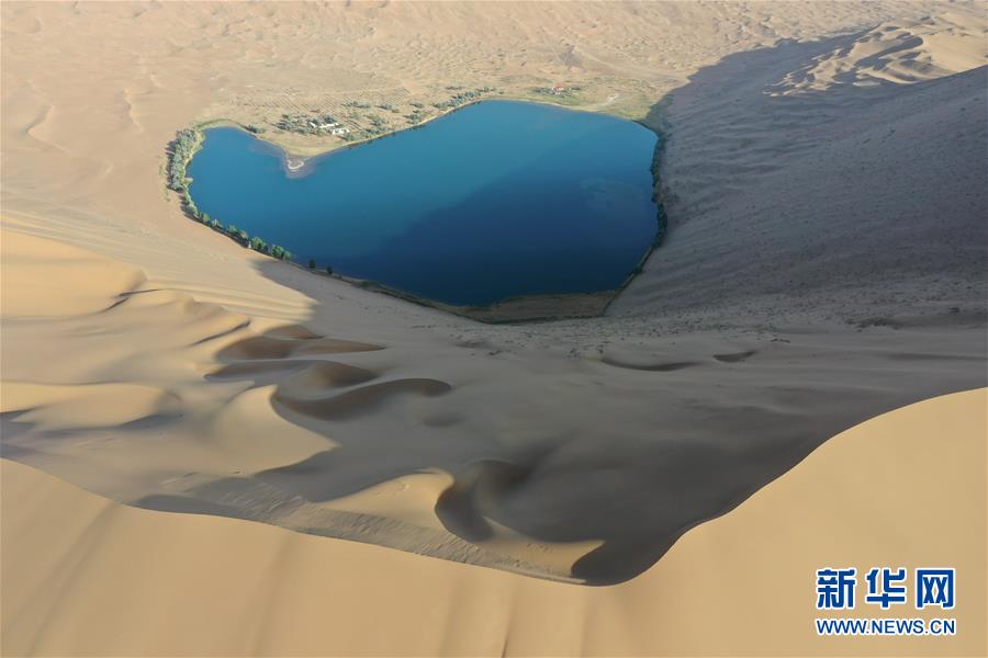 這是5月29日拍攝的巴丹吉林沙漠的諾爾圖湖(無(wú)人機(jī)照片)。新華社記者徐欽攝。