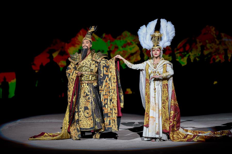 5月28日,演員在大型實景神話音樂劇《昆侖之約》中表演。5月28日,新疆文化旅游新名片——大型實景神話音樂劇《昆侖之約》在烏魯木齊南山景區(qū)上演。該劇融自然山水之美、藝術(shù)文化之光、現(xiàn)代科技之新于一體,為市民獻上一場視聽盛宴。新華社記者丁磊攝。