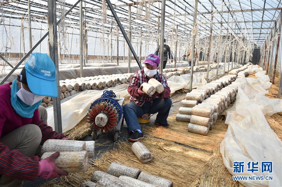 延邊朝鮮族自治州圖們市石峴鎮(zhèn)合鑫農民專業(yè)合作社的農戶在大棚內工作(4月11日攝)。新華社記者林宏攝。