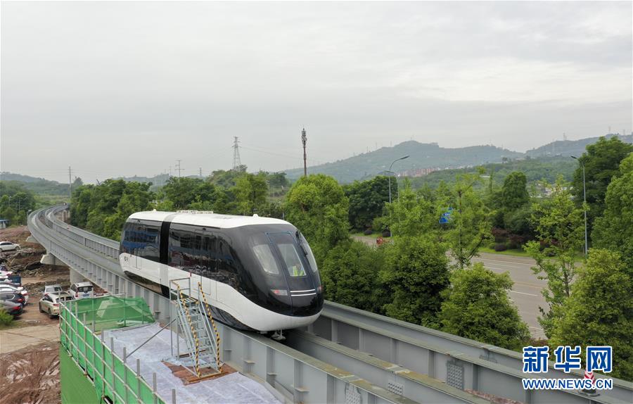 6月3日,一臺(tái)“云巴”在專(zhuān)用運(yùn)行軌道上進(jìn)行調(diào)試(無(wú)人機(jī)照片)。近日,重慶市首條“云巴”示范線項(xiàng)目在重慶璧山區(qū)正式亮相。此次發(fā)布的“云巴”采用電能驅(qū)動(dòng),具有轉(zhuǎn)彎半徑小、爬坡能力強(qiáng)、噪音低、安全性高、建設(shè)成本低、建造周期短等優(yōu)勢(shì),能為乘客提供更智能、舒適、便捷的出行體驗(yàn)。據(jù)介紹,璧山區(qū)“云巴”示范線項(xiàng)目自2019年8月開(kāi)建,線路正線全長(zhǎng)15.4km,共設(shè)車(chē)站15座,預(yù)計(jì)2020年9月全線通車(chē)。新華社記者劉潺攝。