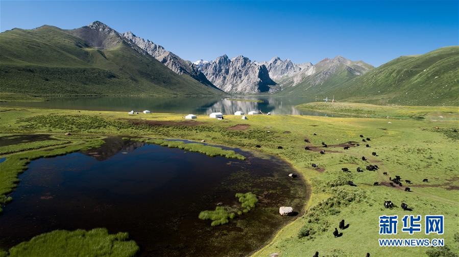 2019年7月8日拍攝的位于三江源地區(qū)的青海省果洛藏族自治州久治縣境內(nèi)的年保玉則風(fēng)光(無人機照片)。6月2日,青海省生態(tài)環(huán)境廳發(fā)布《2019年青海省生態(tài)環(huán)境狀況公報》稱,青海省三江源地區(qū)境內(nèi)的長江、黃河、瀾滄江干流流域水質(zhì)優(yōu)良,植被覆蓋度呈增長趨勢,全省生態(tài)環(huán)境狀況總體保持穩(wěn)定。新華社記者吳剛攝。