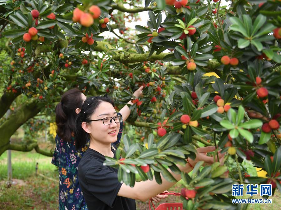 6月3日,游客在上虞區(qū)驛亭鎮(zhèn)真山楊梅基地采摘。近日,浙江紹興上虞區(qū)二都楊梅開采。楊梅是上虞區(qū)傳統(tǒng)特色農(nóng)產(chǎn)品,目前上虞區(qū)二都楊梅種植面積1651公頃,年產(chǎn)量1.1萬(wàn)噸,2019年二都楊梅成功申報(bào)國(guó)家農(nóng)產(chǎn)品地理標(biāo)志認(rèn)證。新華社記者翁忻旸攝。